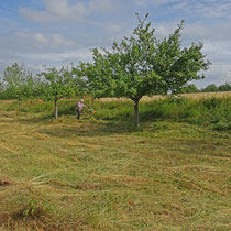 war die Mahd bereits 3 Wochen vergangen und das Gras hakte so manches Mal beim Aufrechen. Um 8:45 ging es los. Beim Kreisel waren aktiv: Gudrun Rebmann, Andreas Baumann, Alexander, Paul und Bruno